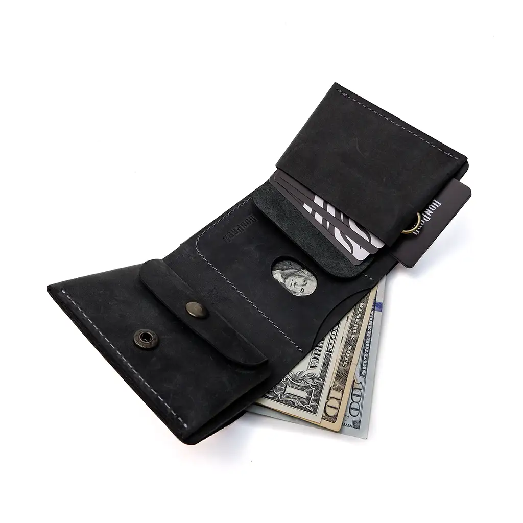 کیف پول سهلت مینیمال چرم طبیعی مدل مونولیت / دودی، انتخابی کاربردی و شیک برای افرادی است که به یک کیف پول مینیمال، سبک و در عین حال جادار نیاز دارند. این کیف از چرم طبیعی مرغوب ساخته شده و طراحی سهلت آن امکان نگهداری منظم کارتها، اسکناسها و مدارک کوچک را فراهم میکند. رنگ دودی تیره در کنار دکمهی فلزی مقاوم، ترکیبی بینقص از سادگی و جذابیت ایجاد کرده که با انواع استایلهای روزمره و رسمی قابل ست شدن است.